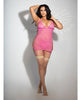 Lace & Mesh Side Gartered Chemise & G-String Pink QN