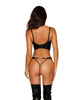 Embroidered Stretch Faux Leather Bustier w/G-String 2 pc Set - Black