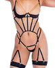 Caged Temptress Satin & Tulle Bustier W/draped Chain Detail & Thong Black