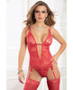Open Front O-Ring Garter Teddy & Stockings Calypso Coral O/S