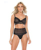 Striped Mesh Bra & High Waist Thong Black