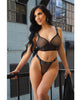 Vibes Baddie Glitter Mesh Long Line Bralette & Thong Black
