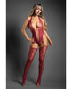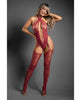 Sheer Pretty Poison Snakeskin Pattern Halter Bodystocking - Burgundy O/S